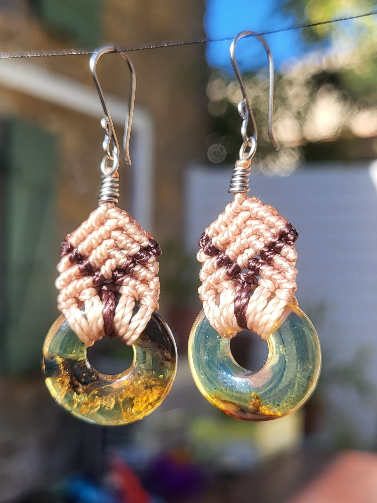 Boucles d’Oreilles Macramé Résine d’ambre Translucide