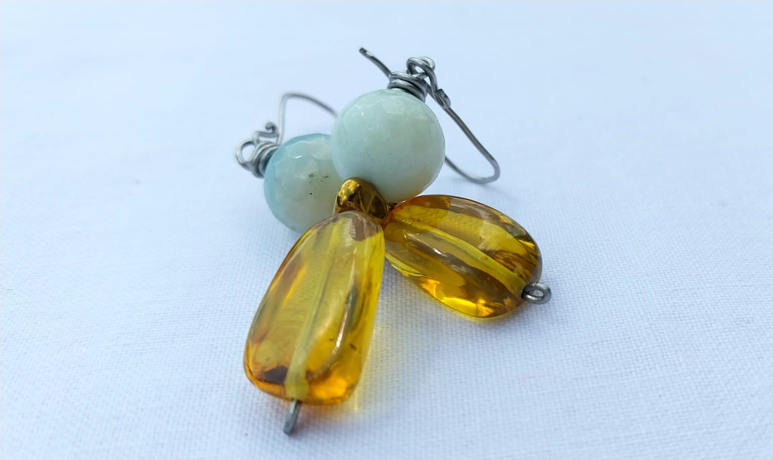 Découvrez ces ravissantes boucles d’oreilles alliant la chaleur de l’ambre et la douceur des pierres aux nuances vertes pâles. Chaque boucle présente une composition harmonieuse de gemmes translucides dorées et de pierres aux reflets verts tendres. Crochets en métal de couleur argentée pour un port confortable et sécurisé. Travail artisanal minutieux révélant la beauté naturelle contrastée des pierres. Pièces uniques évoquant harmonie, douceur et équilibre selon les traditions naturelles.