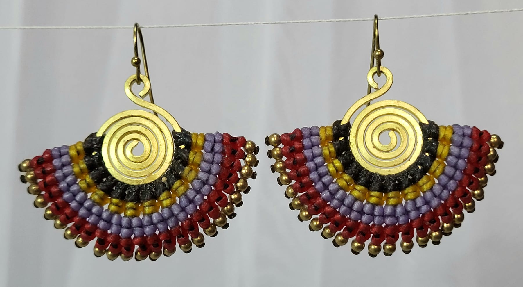 Boucles Macramé Lavande Rouge Jaune Bronze