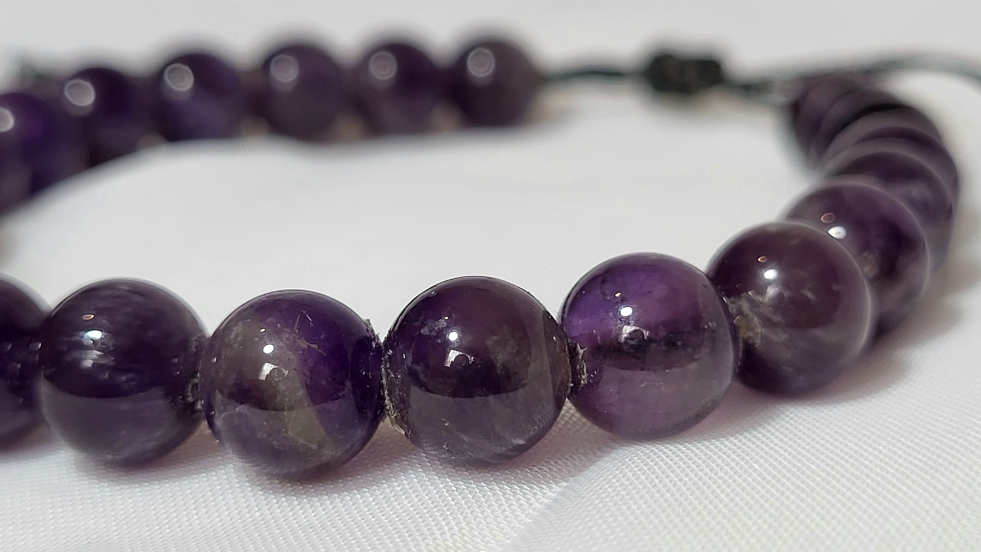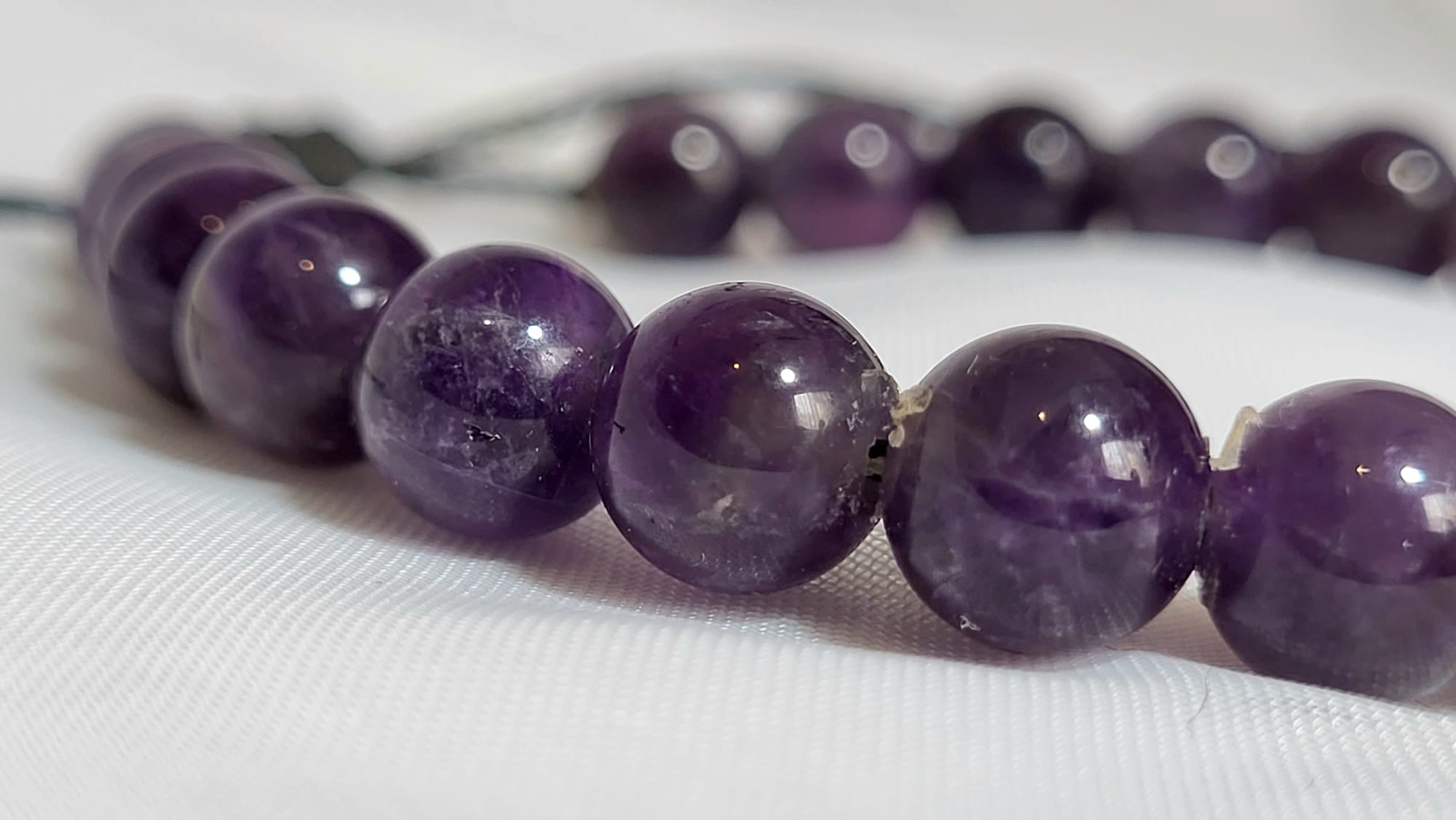 Depuis la Grèce antique jusqu’aux évêques du Moyen-Âge, l’améthyste a toujours été portée par ceux qui cherchent la sagesse et la protection contre les excès. Son nom vient du grec ‘améthystos’ — celui qui ne s’enivre pas — car on lui prêtait le pouvoir de garder l’esprit clair et serein. Ces grosses perles d’améthyste naturelle violet royal profond, polies à la main, offrent un bijou généreux et luxueux qui honore cette longue tradition de sagesse ancestrale.