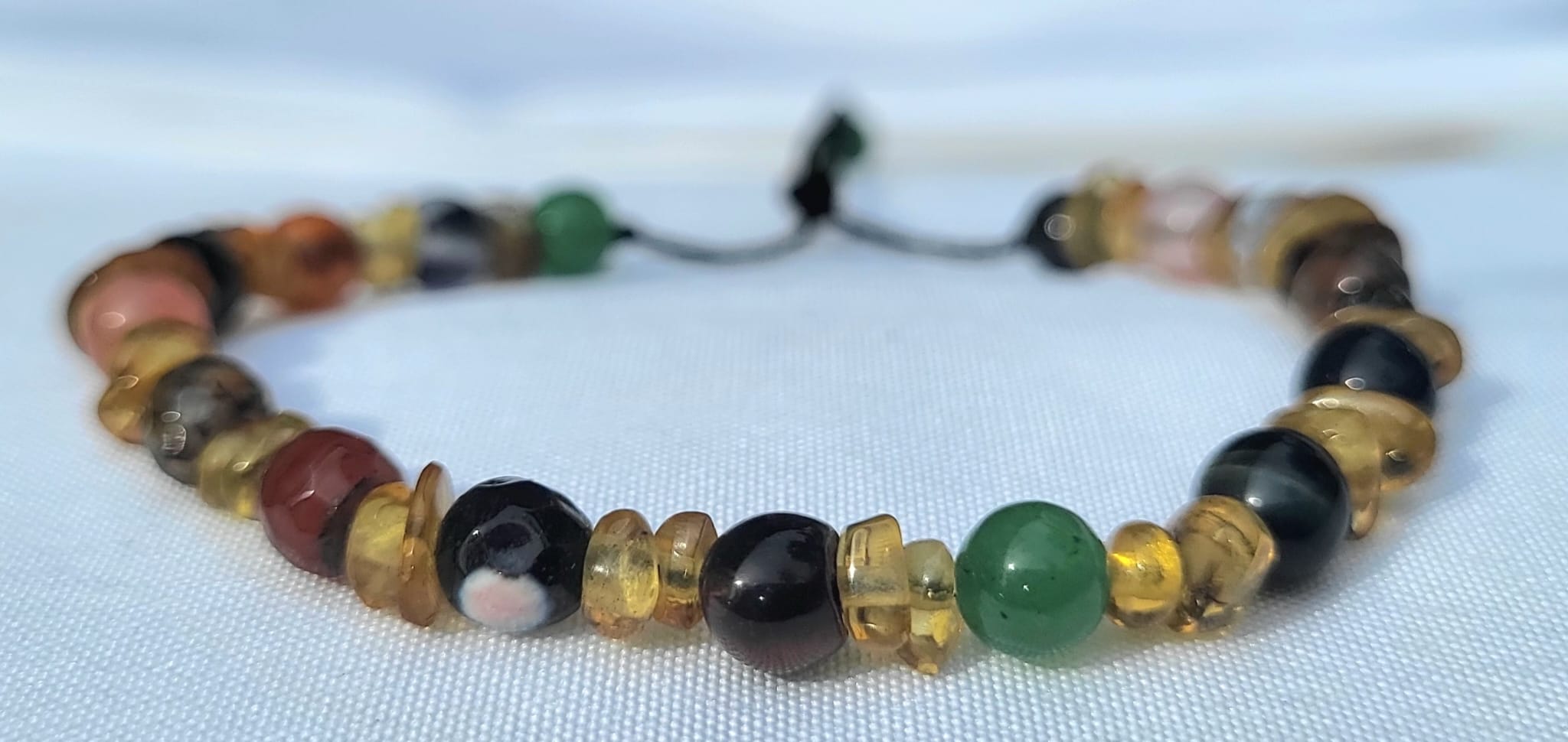 ✨ Découvrez ce magnifique bracelet artisanal aux couleurs envoûtantes. Chaque pierre naturelle multicolore raconte une histoire, sublimée par des éléments de couleur dorée. Cette création unique révèle un travail manuel d’exception, où se mêlent traditions ancestrales et élégance intemporelle. Un bijou authentique qui apporte une touche d’originalité et de raffinement à votre style.