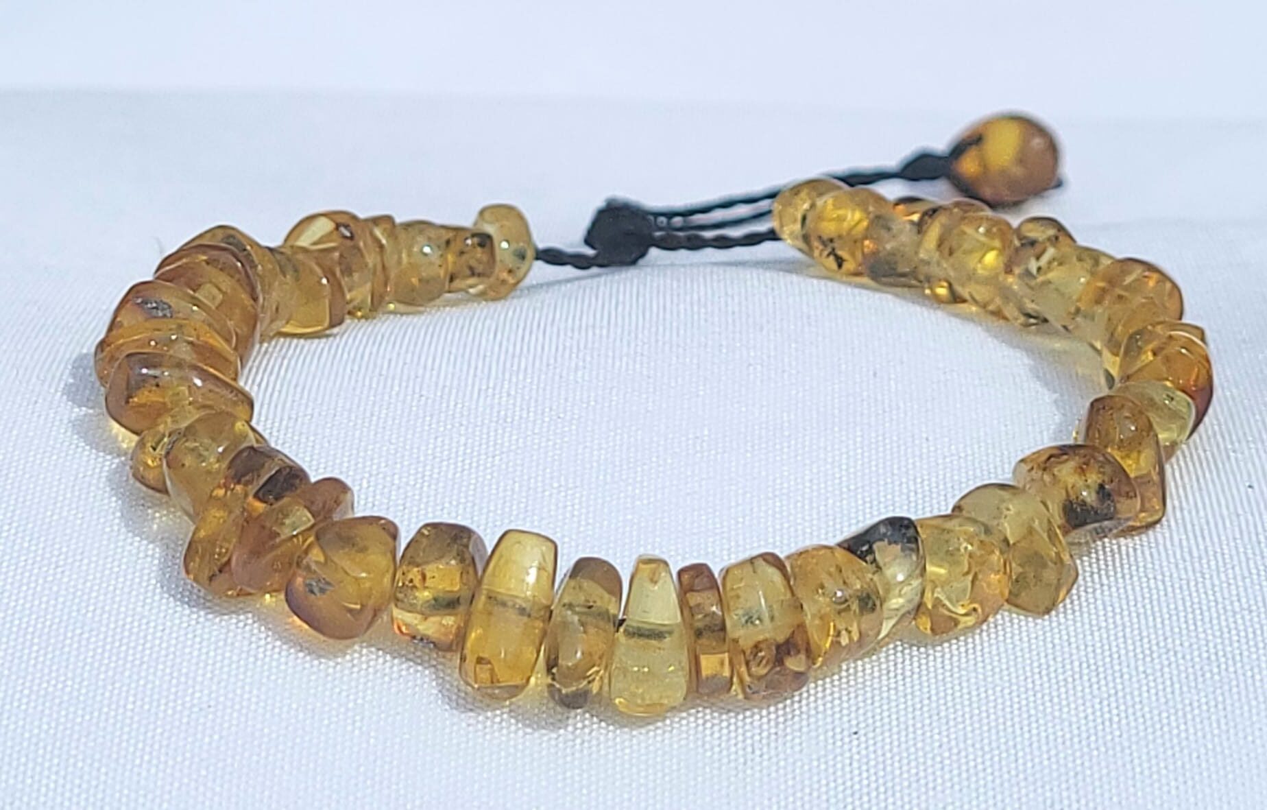 Découvrez ce bracelet chips exceptionnel célébrant la beauté brute des pierres aux reflets ambrés. Chaque fragment conserve sa forme naturelle irrégulière, créant un ensemble unique aux nuances dorées captivantes. Les inclusions visibles racontent l’histoire géologique de chaque specimen. Le montage sur cordon noir ajustable allie tradition et confort. Cette création authentique perpétue l’art mexicain de la lapidairerie naturelle.