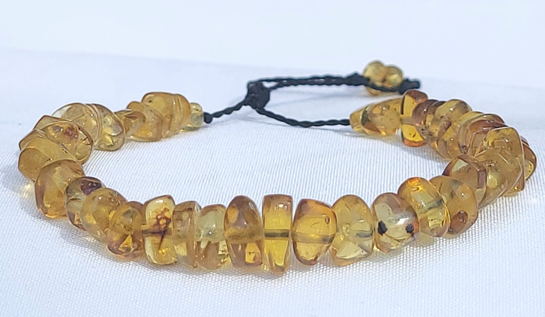 Découvrez ce magnifique bracelet artisanal aux chips de pierres couleur ambrée aux formes organiques naturelles. Chaque fragment révèle une transparence cristalline avec des nuances miel à caramel et des inclusions naturelles uniques. Les formes irrégulières créent un effet sculptural saisissant. Le système de fermeture par cordon noir tressé permet un ajustement parfait. Création artisanale célébrant la beauté brute des formes naturelles pour un style bohème raffiné.