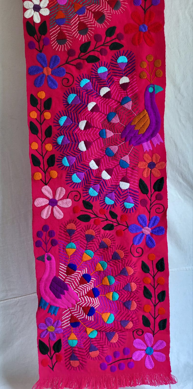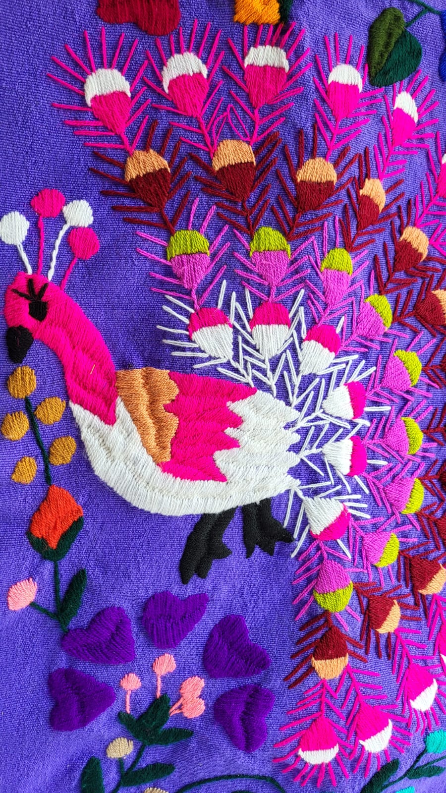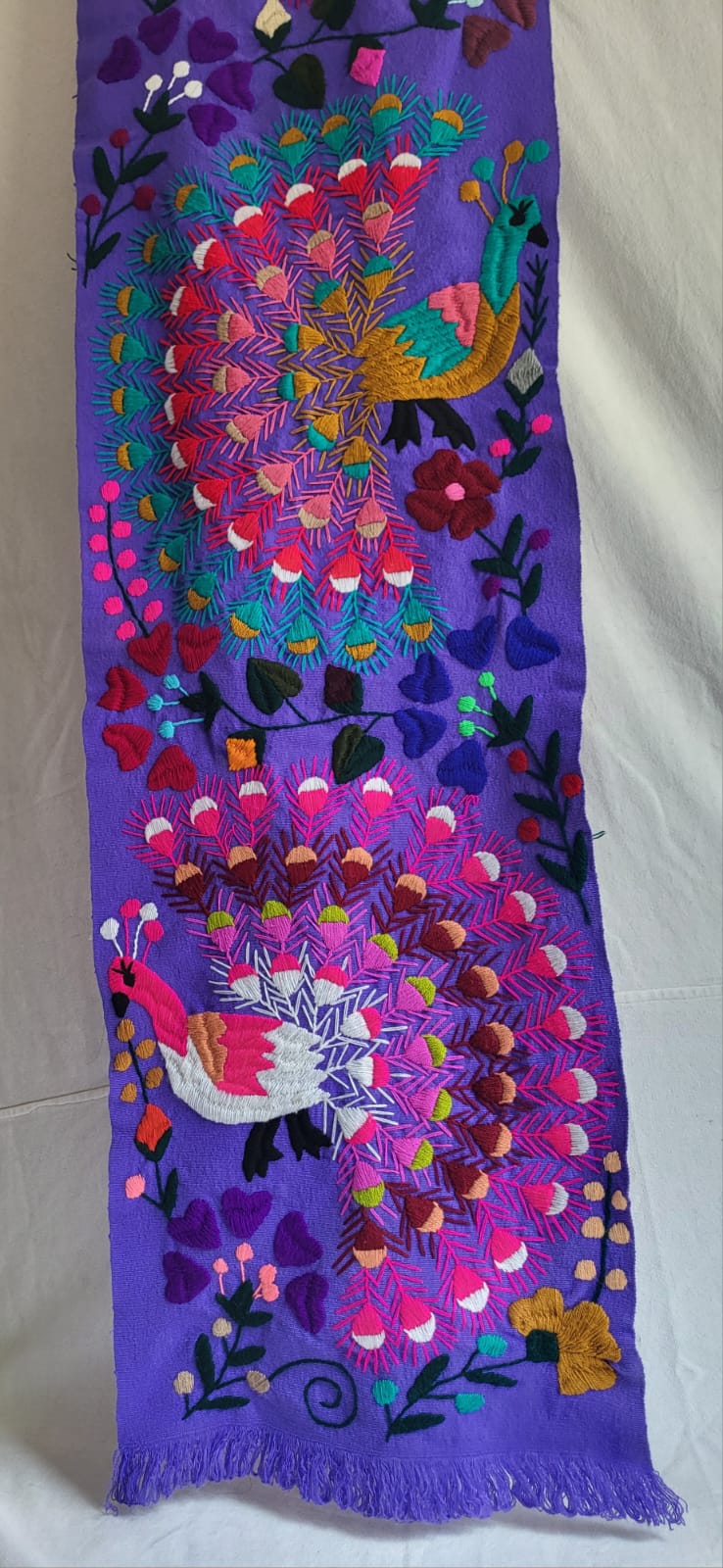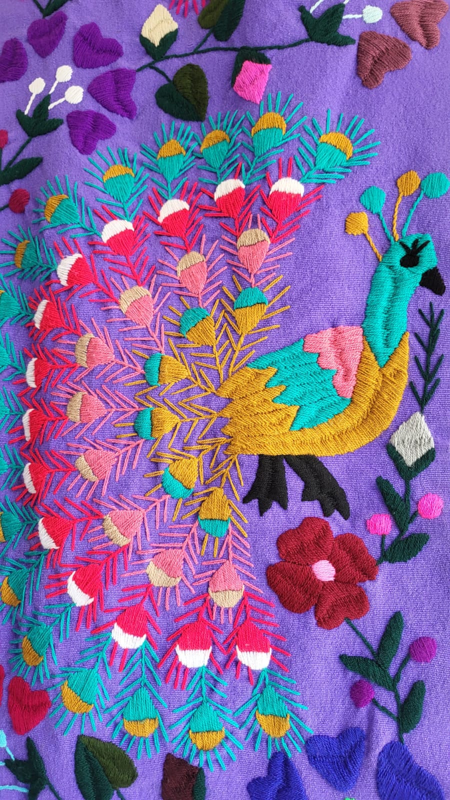Broderie Chiapas Mauve Paon Fait Main 175cm
