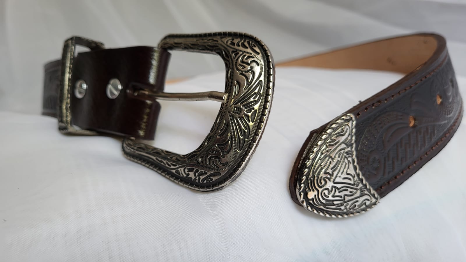 - Boucle : Style western, métal ciselé, interchangeable par système de vis