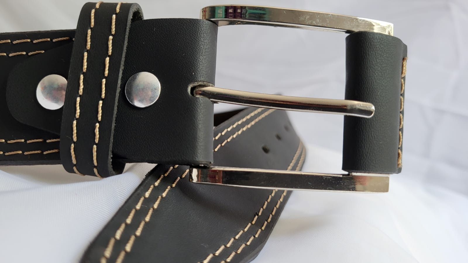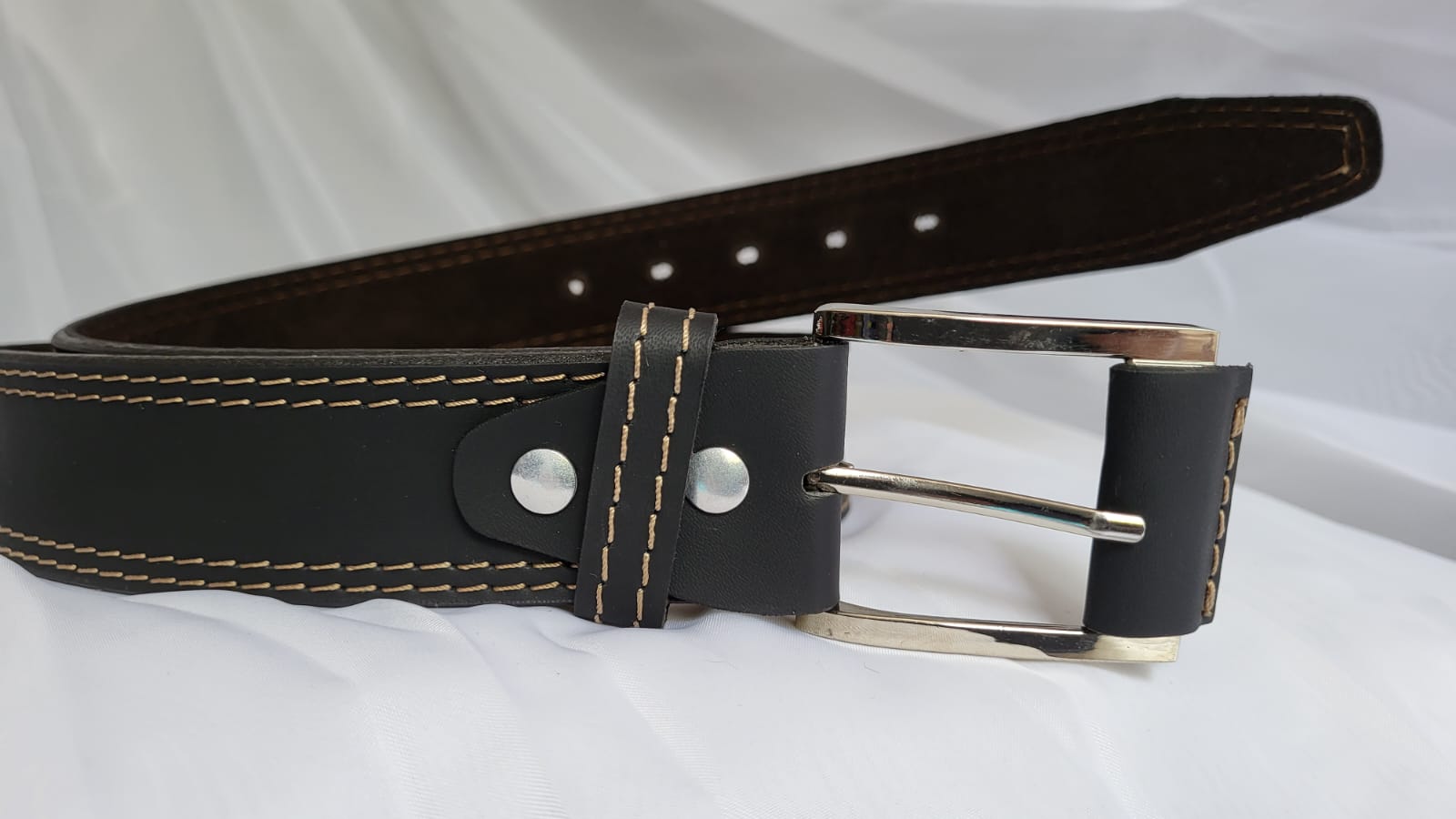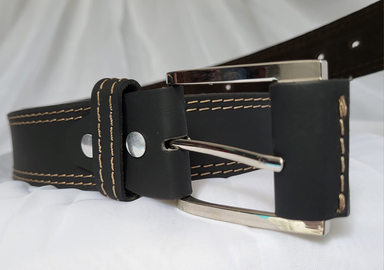 Ceinture Cuir Pleine Fleur Homme Noir Fait Main