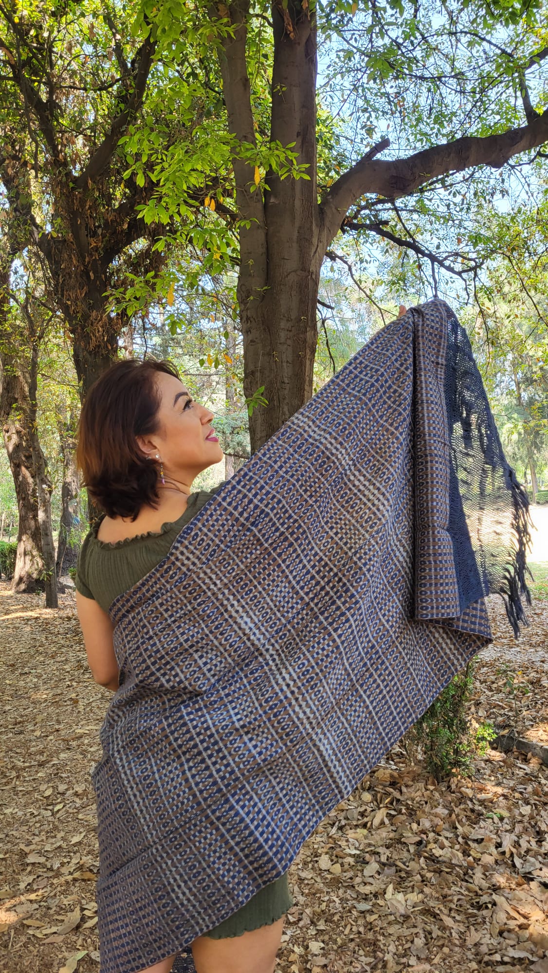 Châle Foulard Coton Tissé Bleu et marron Fait Main