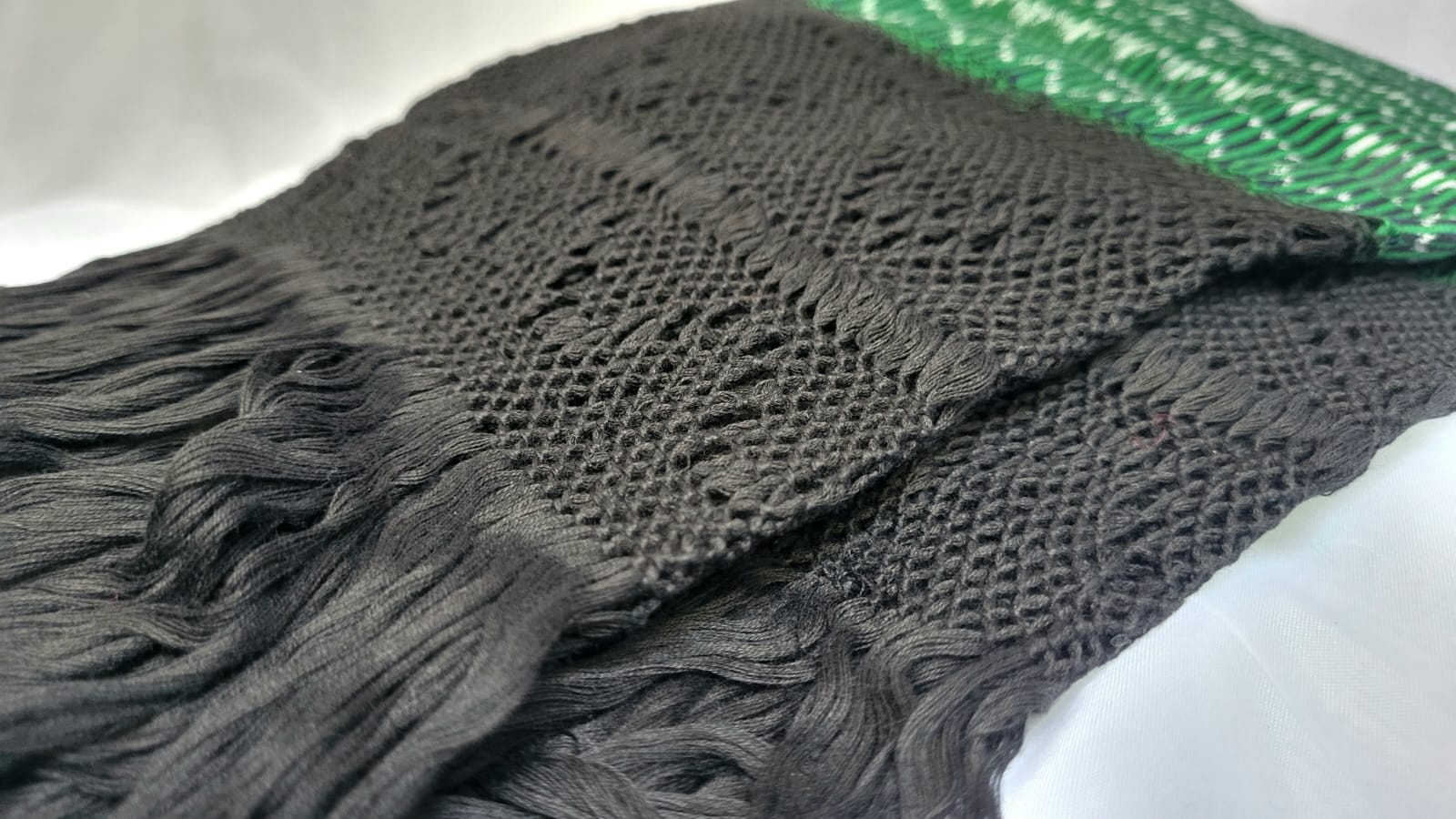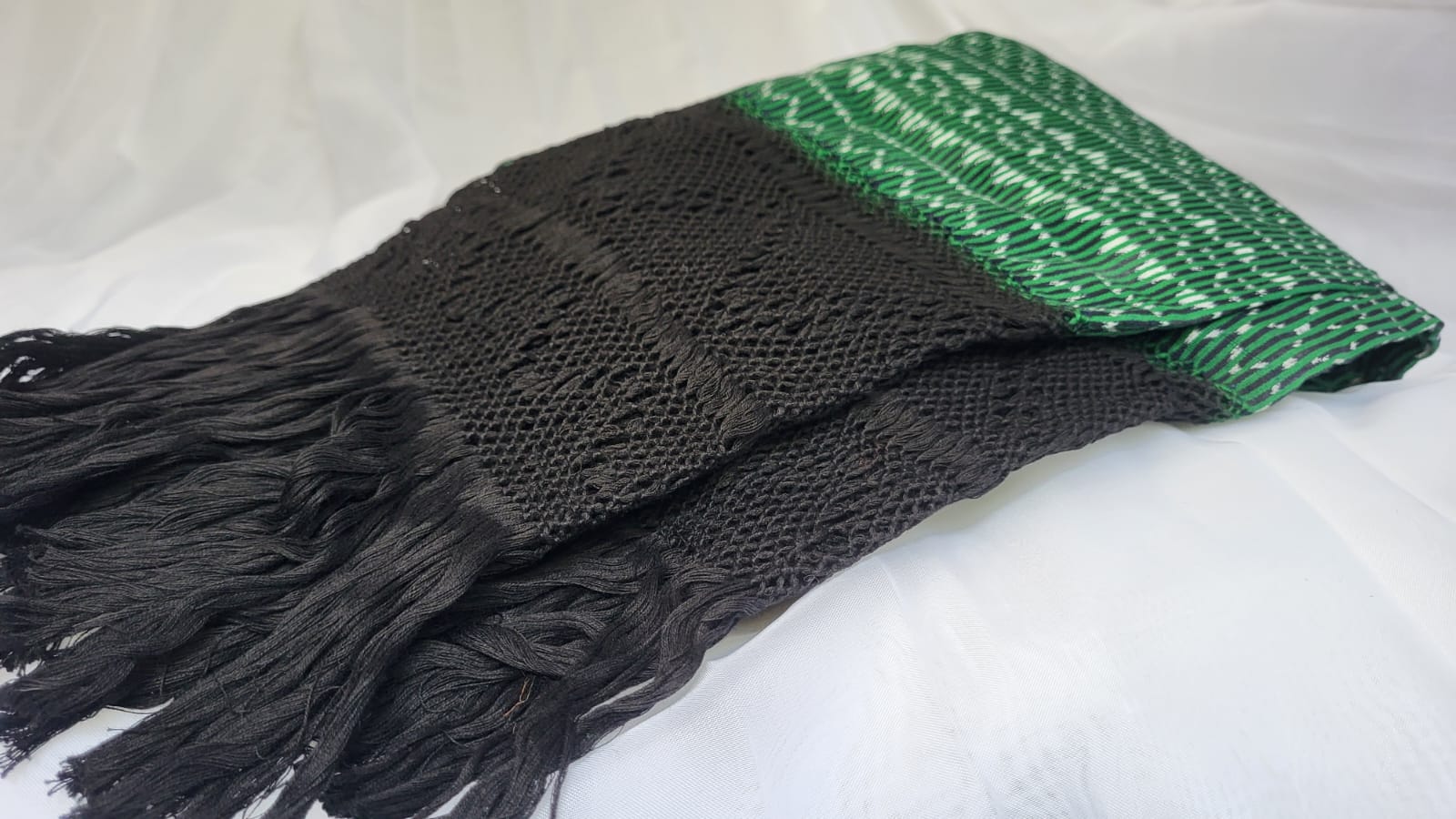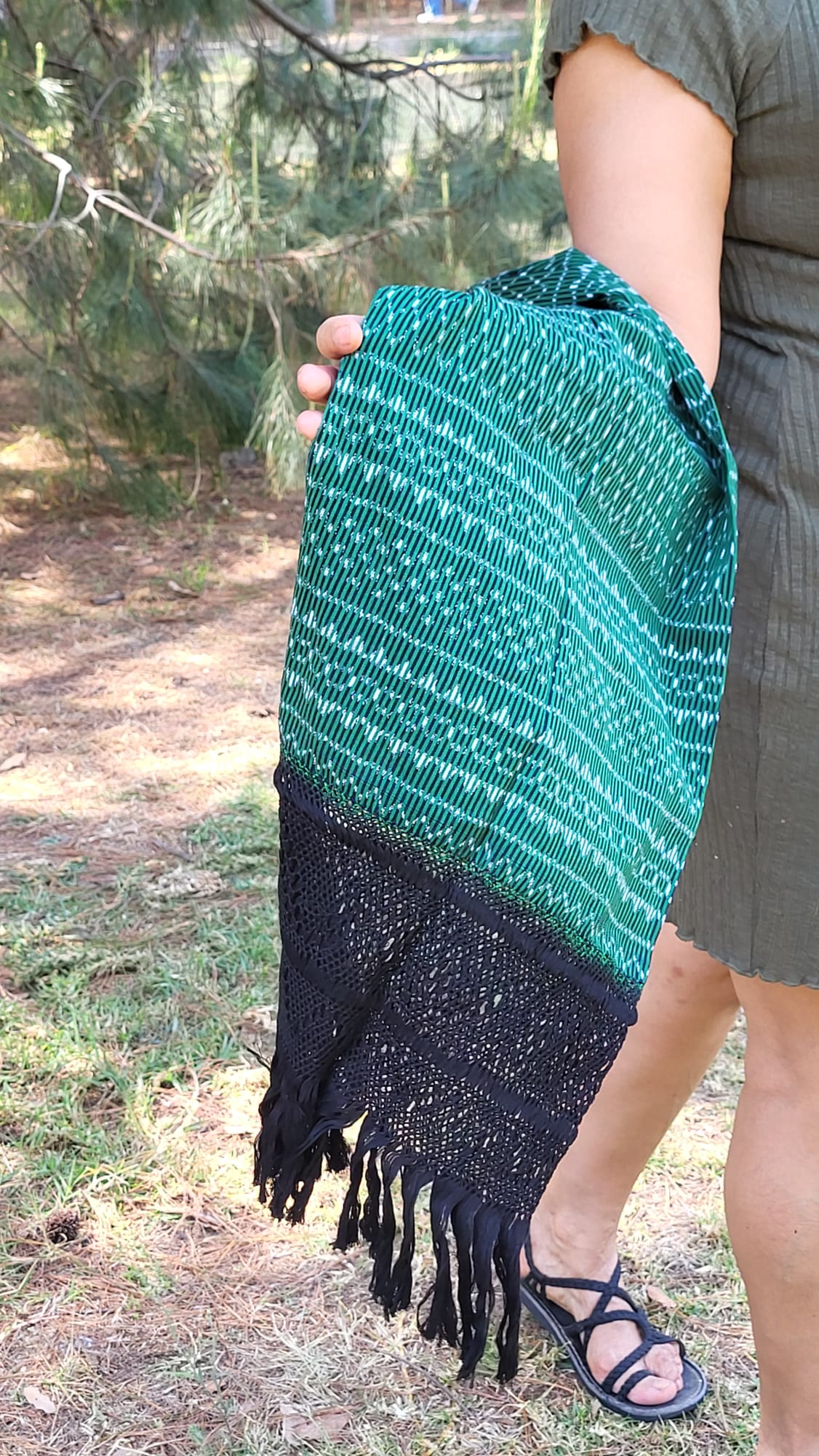 Châle Foulard Coton Tissé Vert et noir Fait Main