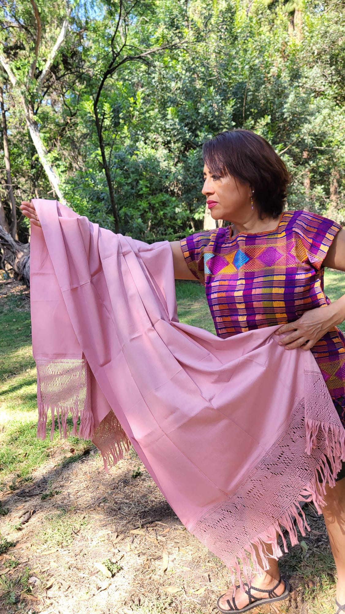 Châle Foulard Coton Tissé Vieux rose Mexique