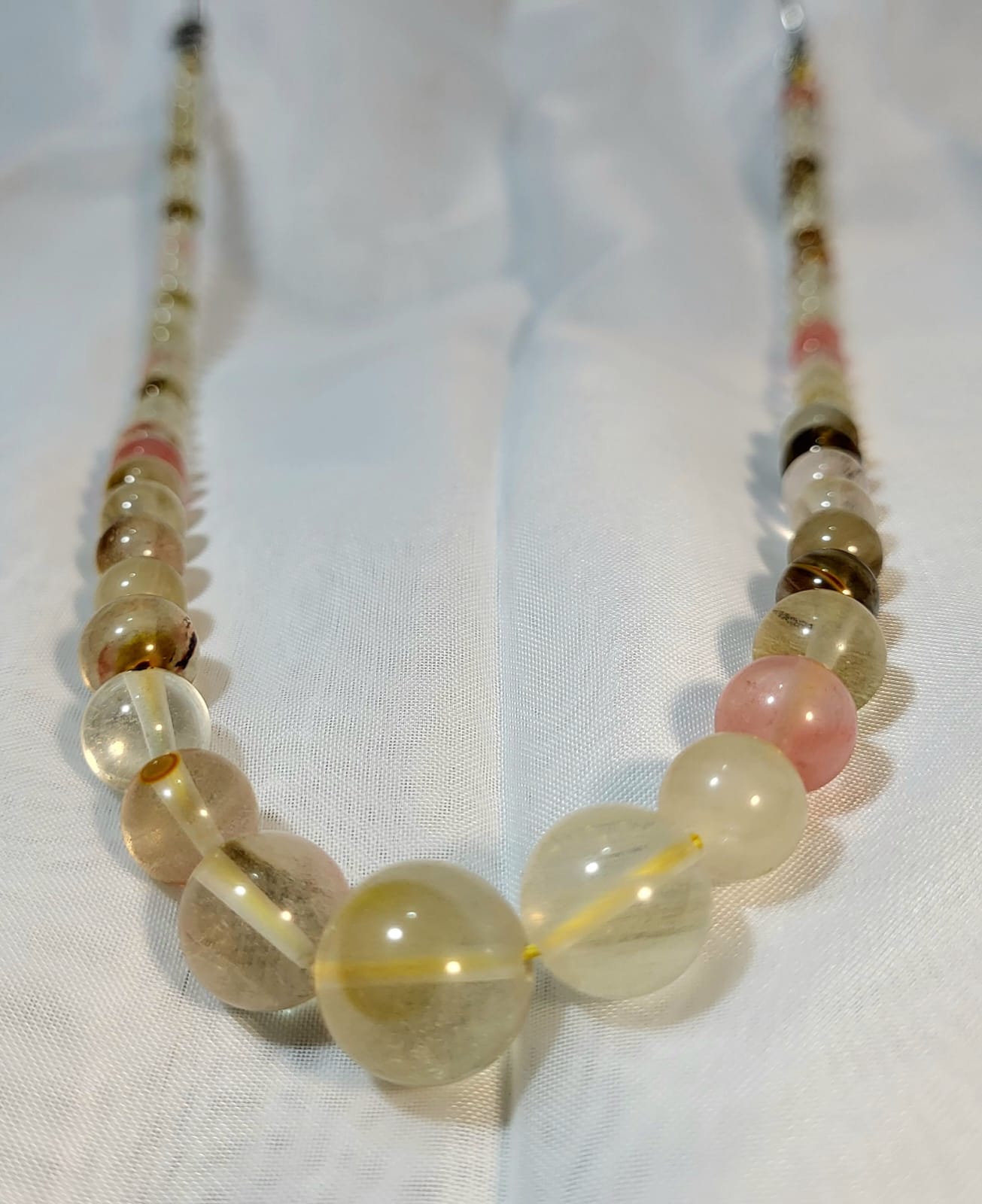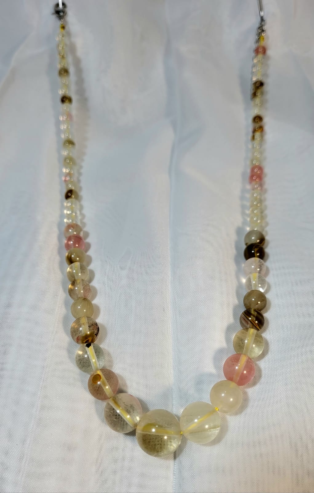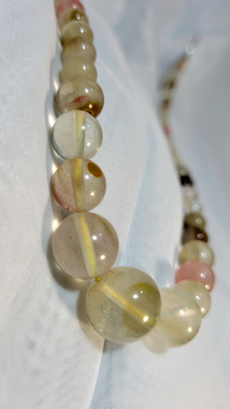 Collier Citrine Naturelle & Quartz Rose Fait Main