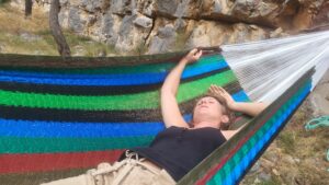 Découvrez ce hamac exceptionnel matrimonial aux rayures géométriques multicolores alliant vert émeraude, rouge bordeaux, bleu marine et noir profond. Tissé à la main par des artisans mexicains experts selon des techniques ancestrales, il transforme chaque moment de détente en voyage visuel captivant. Les motifs rayés créent un rythme hypnotisant parfait pour la relaxation.