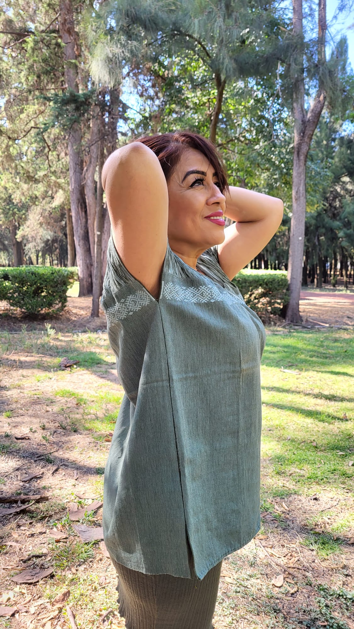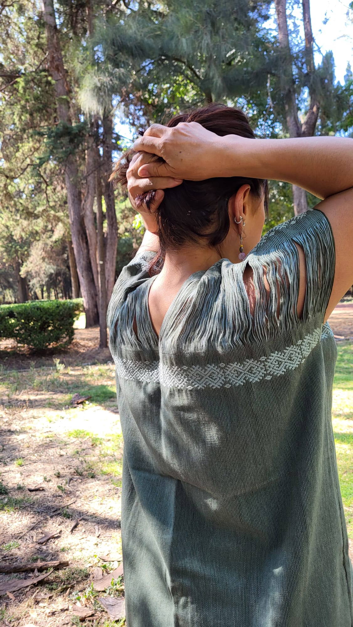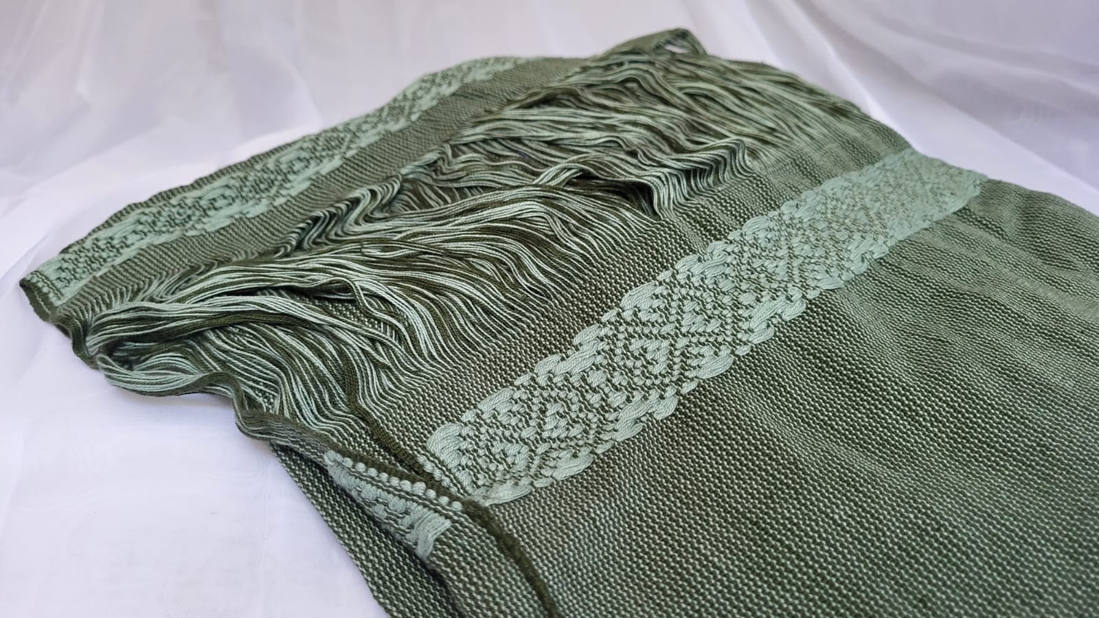 Haut traditionnel mexicain vert sombre – l’élégance discrète de l’artisanat textile mexicain. Tissé sur métier debout, fil après fil assemblé à la main. Une pièce unique à porter comme vêtement ou à encadrer pour sublimer un intérieur.