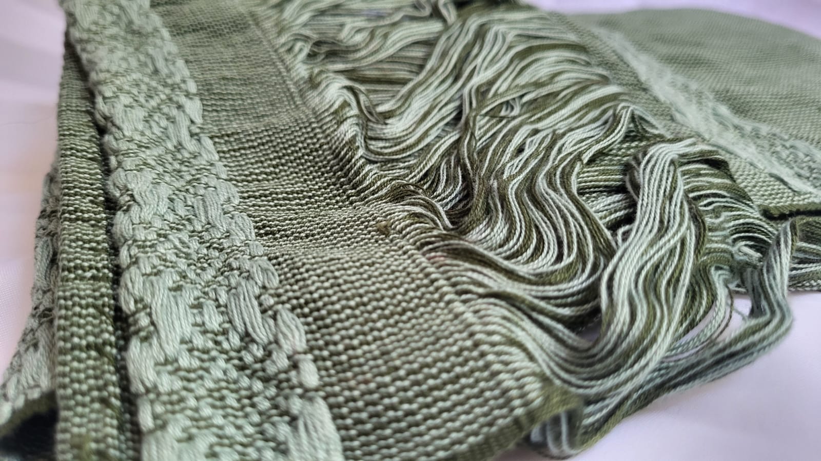 - Technique : Tissage main sur métier debout traditionnel, fils assemblés à la main