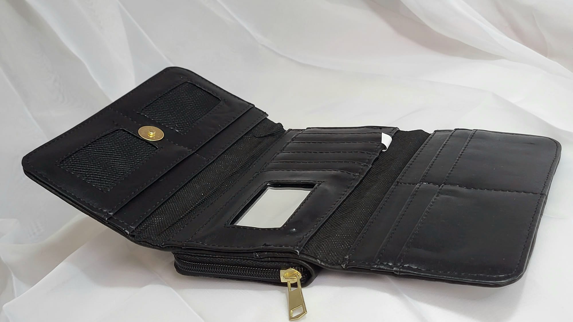 - 12 compartiments pour cartes de crédit, fidélité, visite