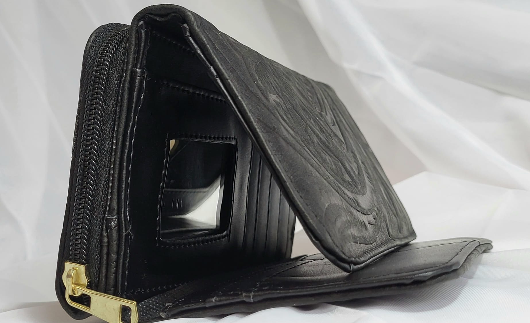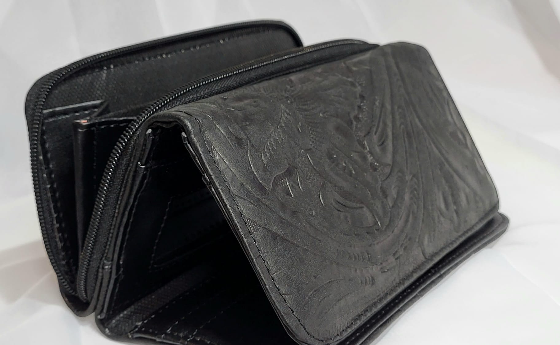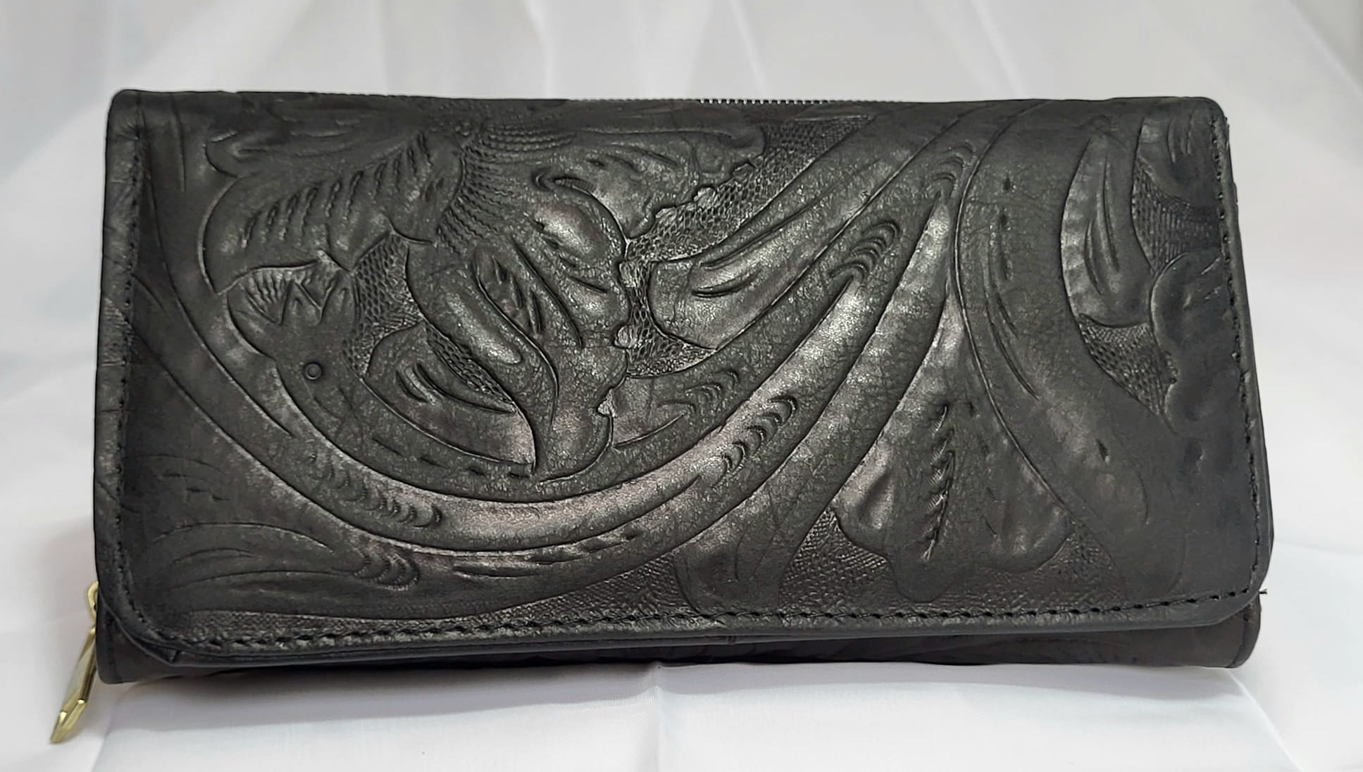 Portefeuille en cuir véritable mexicain noir. 20×10.5×3.5cm. Miroir intégré, 12 compartiments pour cartes, 5 rangements pour billets, papiers et monnaie. Cuir de grande qualité qui se patine avec le temps. Maroquinerie artisanale mexicaine. Livraison offerte.