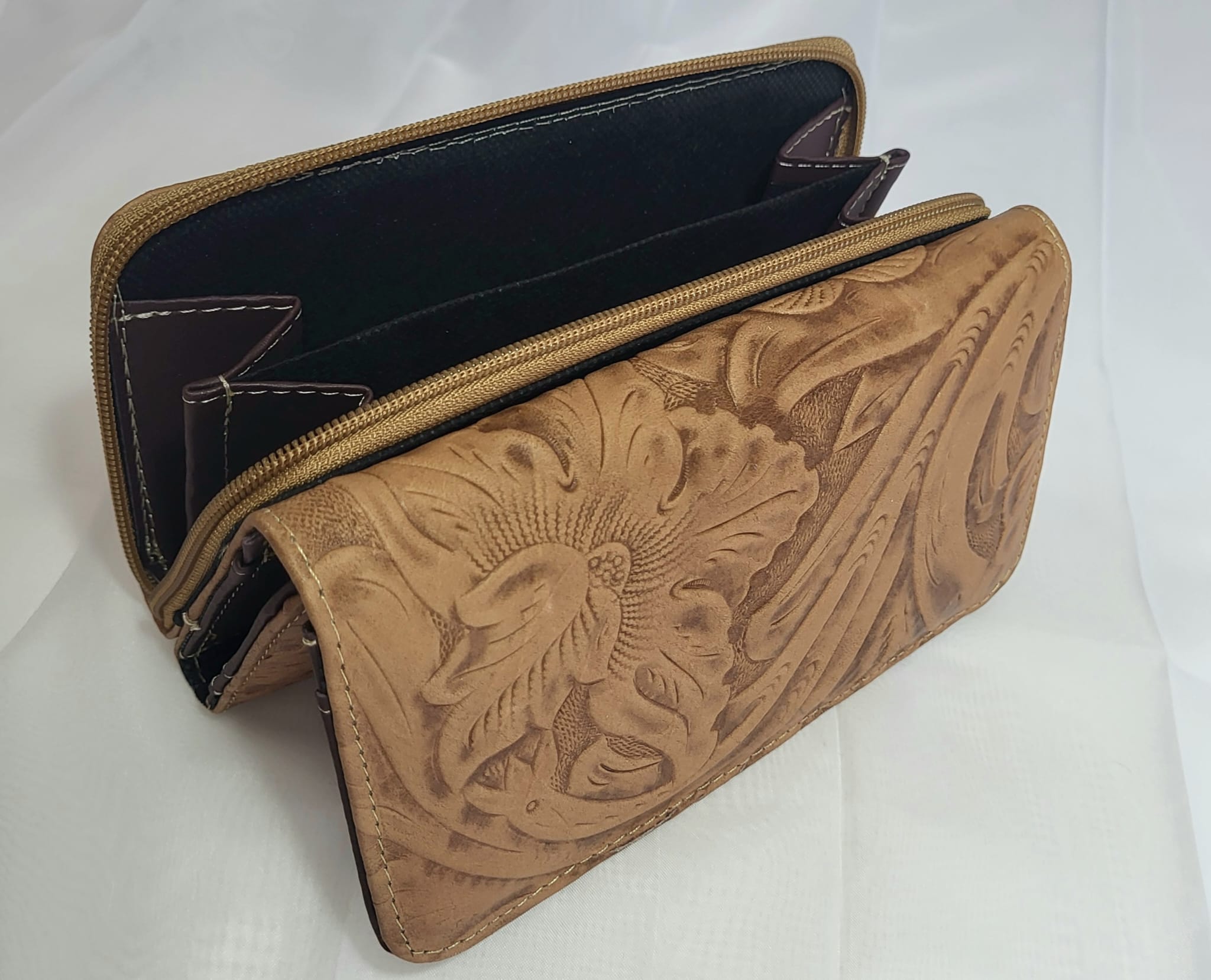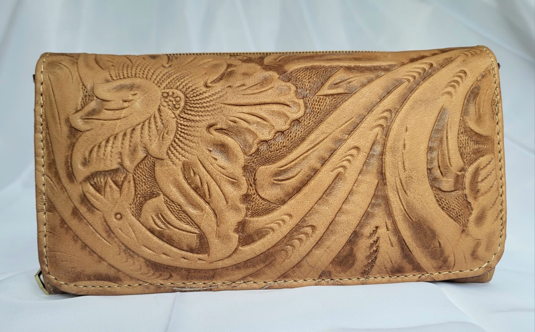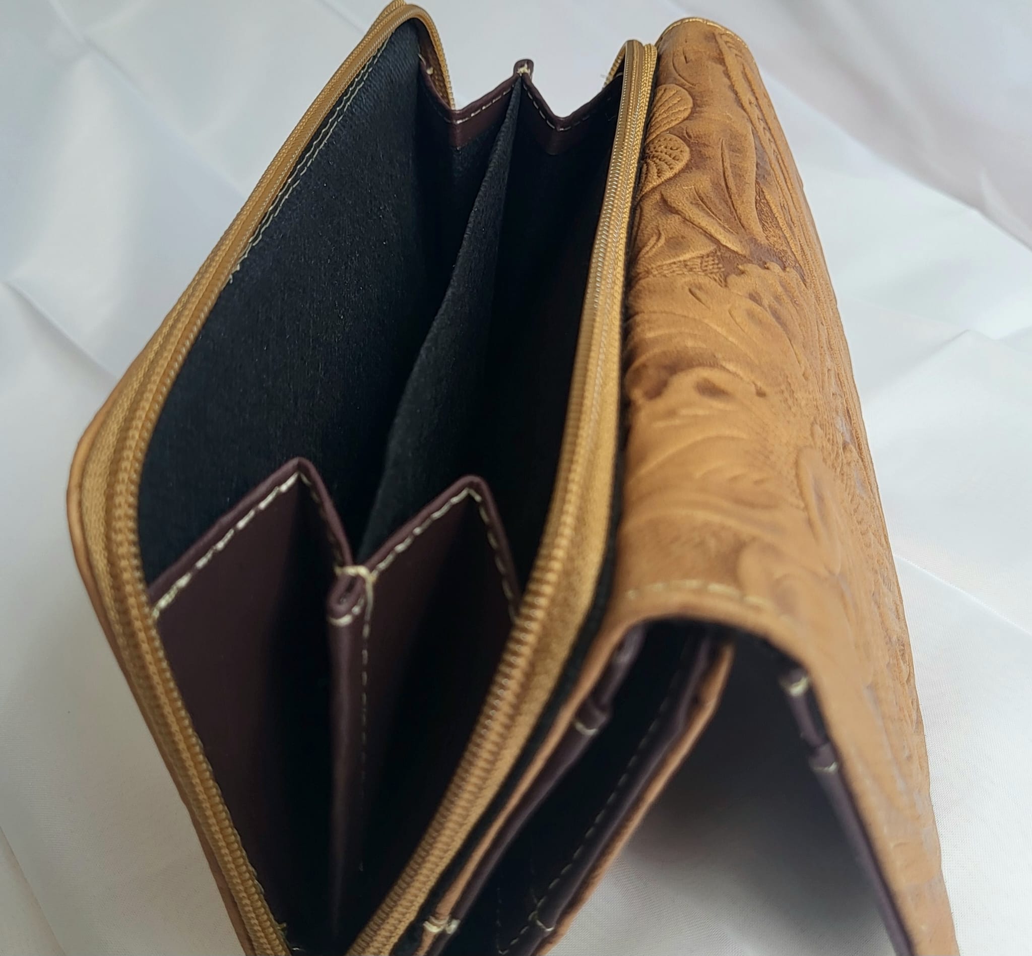 Portefeuille en cuir véritable mexicain cuir naturel clair. 20×10.5×3.5cm. Miroir intégré, 12 compartiments pour cartes, 5 rangements pour billets, papiers et monnaie. Cuir de grande qualité qui se patine avec le temps. Maroquinerie artisanale mexicaine. Livraison offerte.